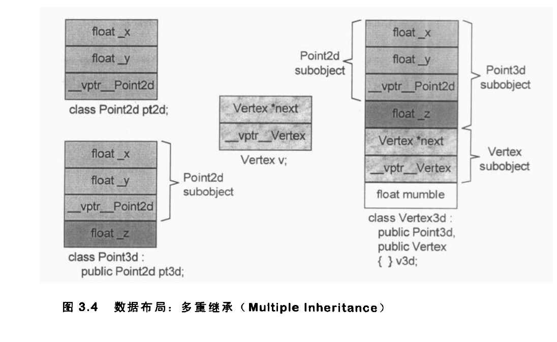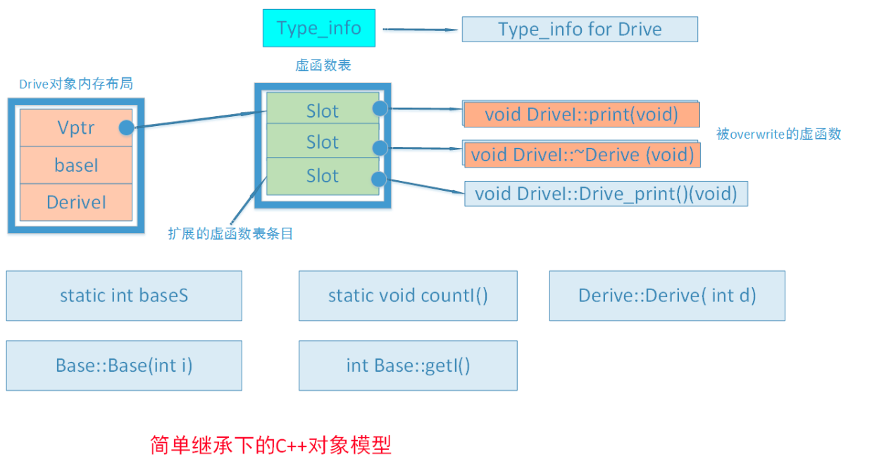 c++继承的对象模型示意图